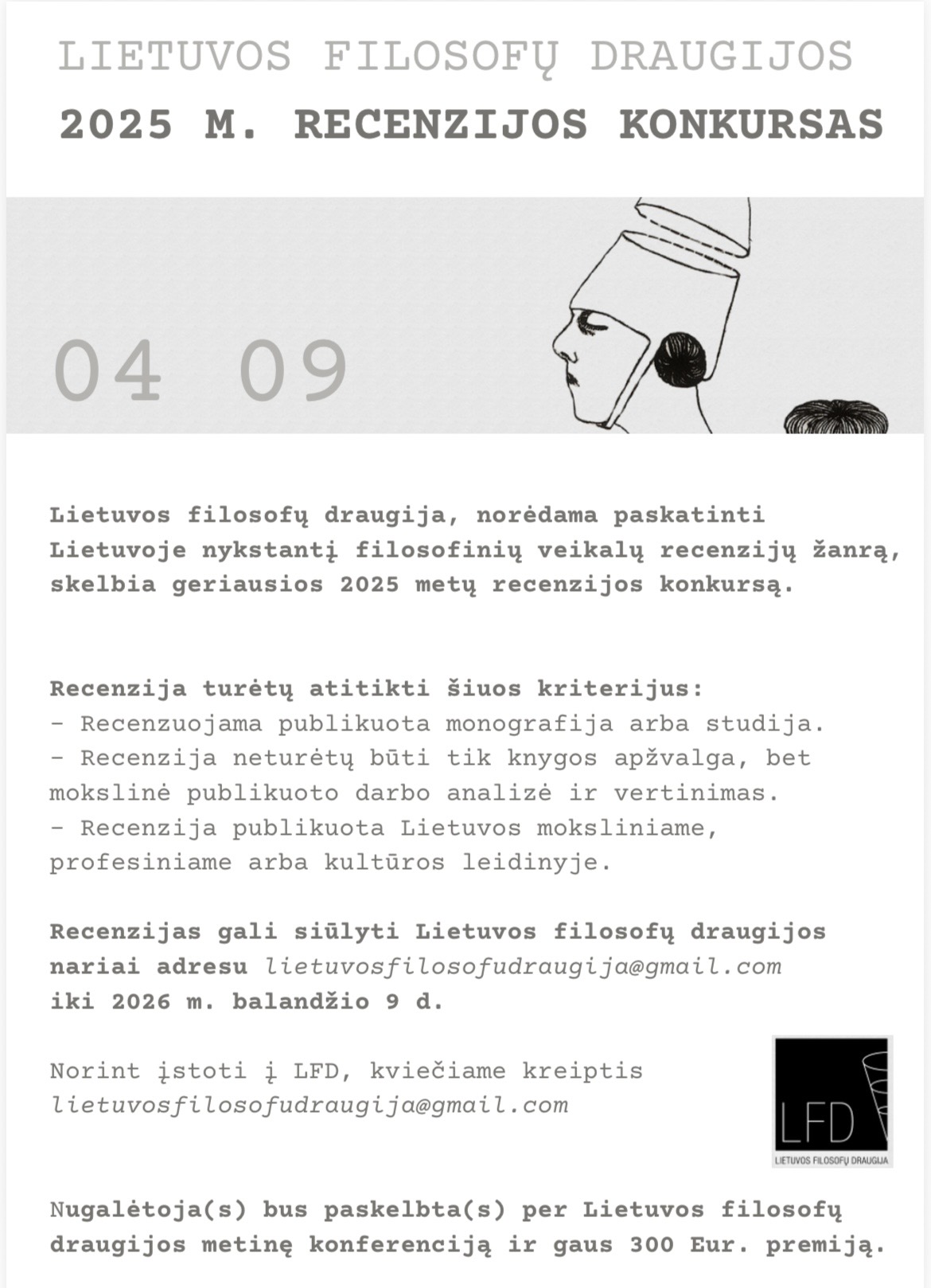 Geriausios 2025 m. filosofinės recenzijos konkursas Vas 1, 2026 Atnaujinta (04 08): recenzijos pridavimo terminas pratęsiamas iki balandžio 19 d.
